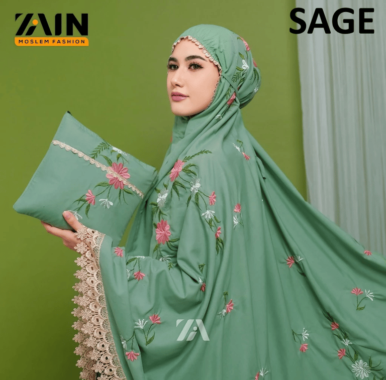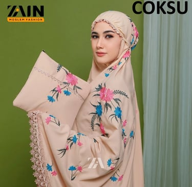 Mukena Dewasa Katun Premium Bordir Bunga Zaskia - ZAIN MOSLEM FASHION